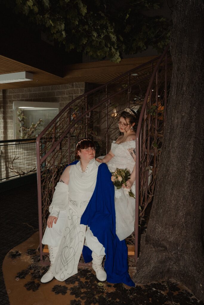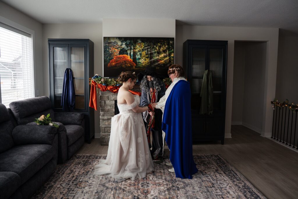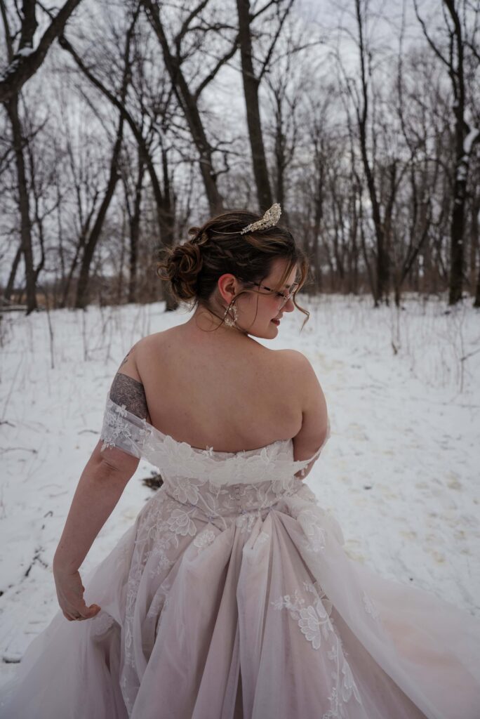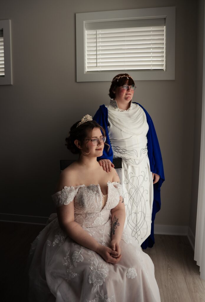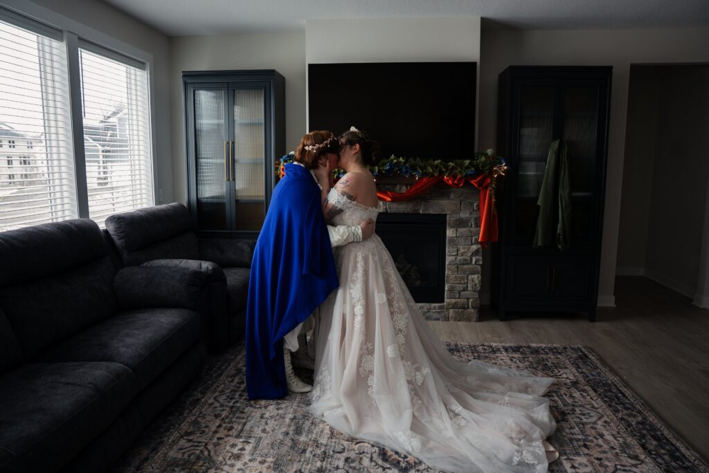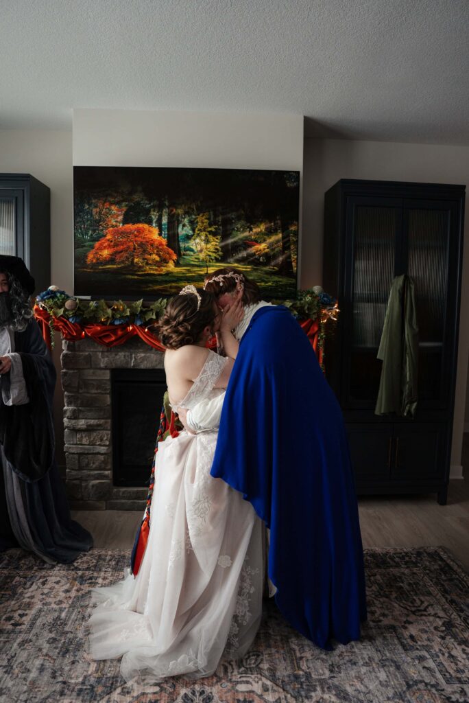 Aubrey (she/they) and Charlie (they/them) held their queer micro-wedding at a family property in Blaine, Minnesota this winter. I immediately felt a connection with these two Capricorns on our consult call, but was even more excited to work together when they told me that the theme of their day was fantasy. It makes me so happy when couples center their day around the things they love, and as a massive LOTR fan, I was so excited to see everyone (guests included!) commit to delivering all the Ren-Faire vibes.