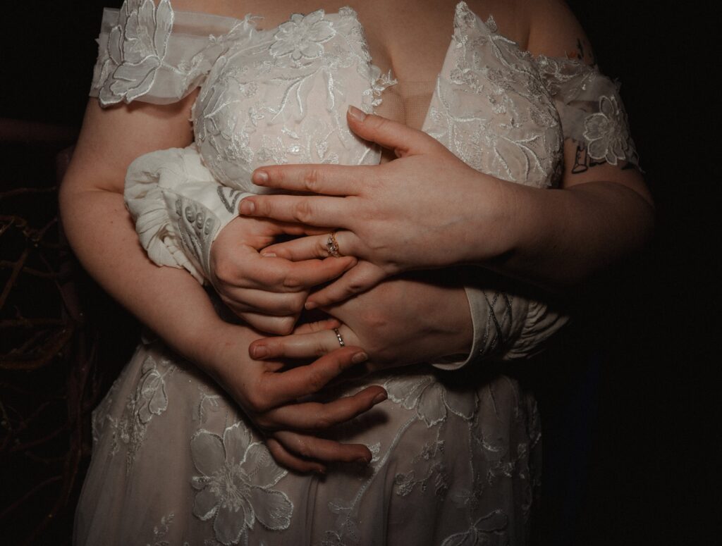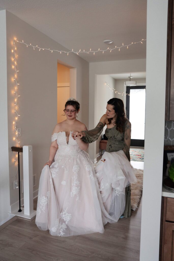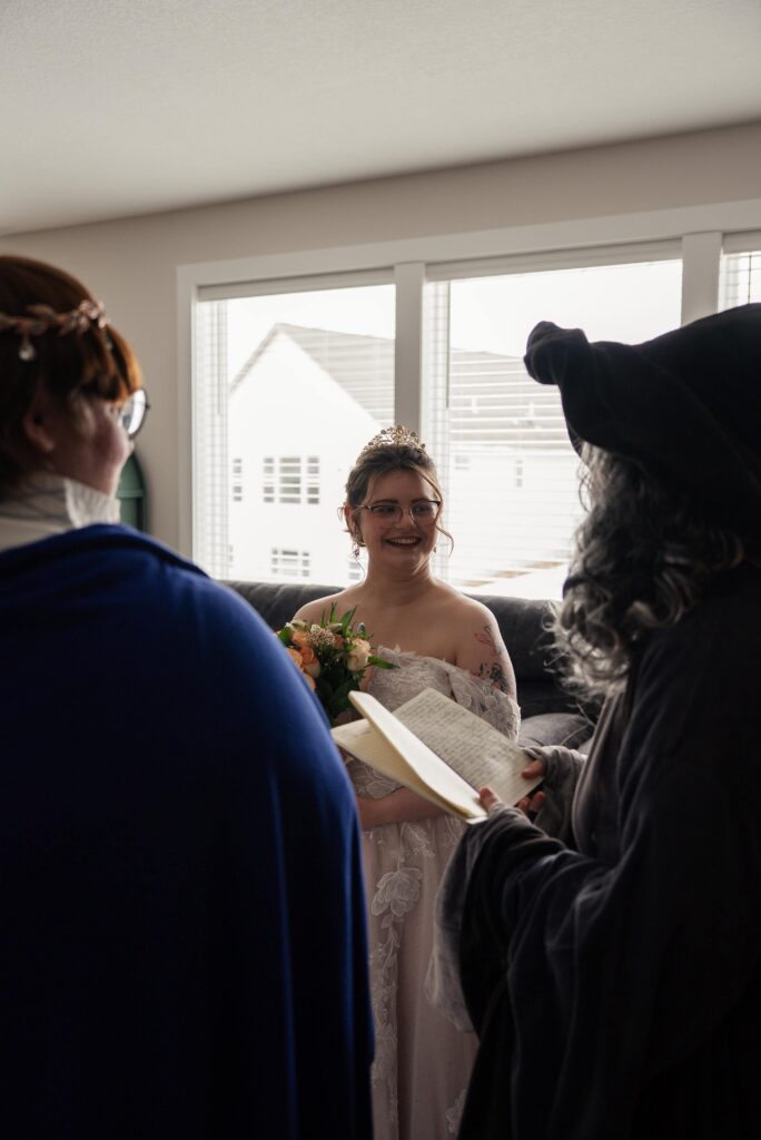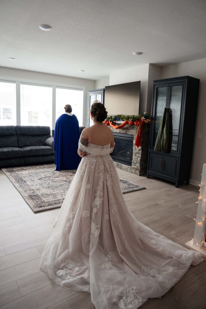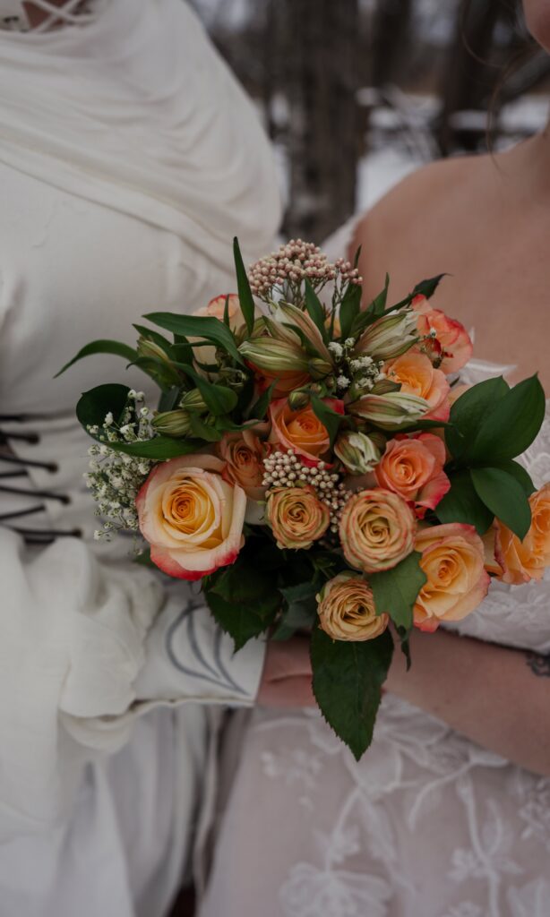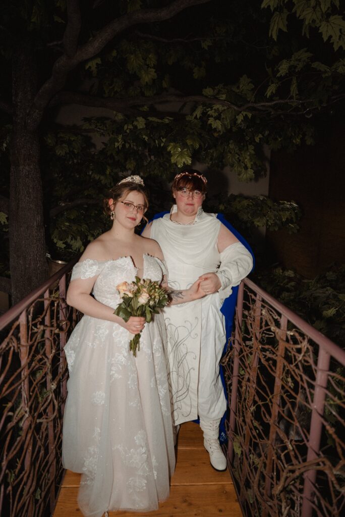 Aubrey (she/they) and Charlie (they/them) held their queer micro-wedding at a family property in Blaine, Minnesota this winter. I immediately felt a connection with these two Capricorns on our consult call, but was even more excited to work together when they told me that the theme of their day was fantasy. It makes me so happy when couples center their day around the things they love, and as a massive LOTR fan, I was so excited to see everyone (guests included!) commit to delivering all the Ren-Faire vibes.